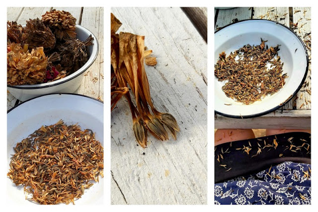 Seed saving... this is a great time to harvest the seeds that you want to save. In the picture above, you see my zinnias. Lots of lovely apricot and raspberry hued blooms this year that I would like to save, with a bit of chartreuse green mixed in. As they are all hybrids, they will not come quite true to form, but are sure to be lovely, nevertheless. I have never yet met a zinnia that I did not like ; )